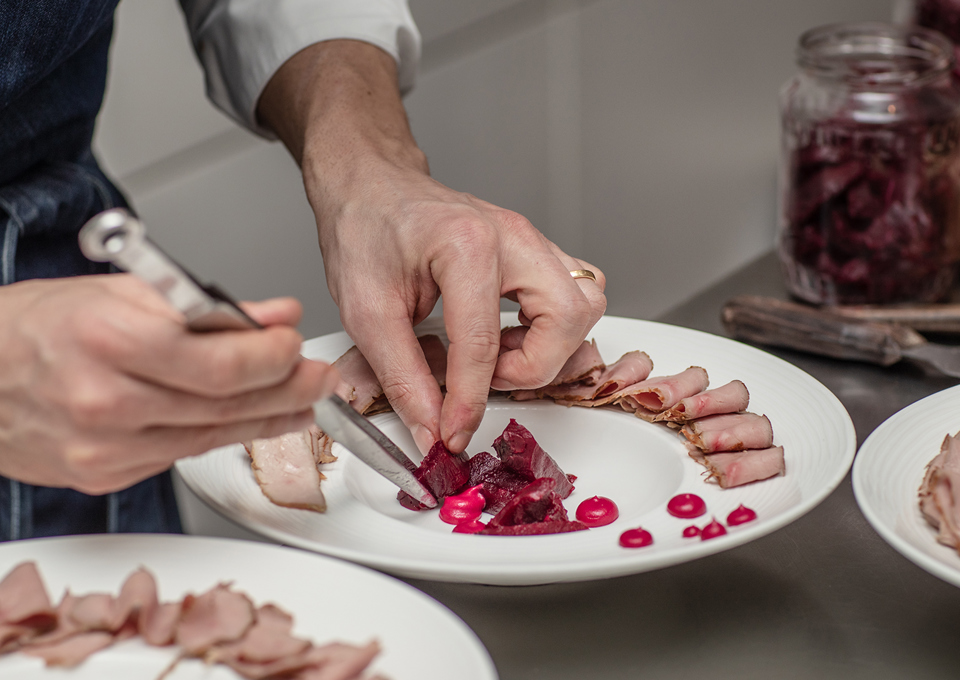 The gourmet restaurant in the Engadine boutique hotel GuardaVal offers Engadine gourmet cuisine at the highest level with 14 points Gault Millau. «Paschiun art culinarica alpina», passion for alpine culinary art, is René Stoye's philosophy. Our chefs put this philosophy into practice every day. The dishes are deliberately reduced to what the region and the surrounding Alpine area have to offer. The result is food with the greatest pleasure. Our gourmet menus change with the rhythm of the seasons.